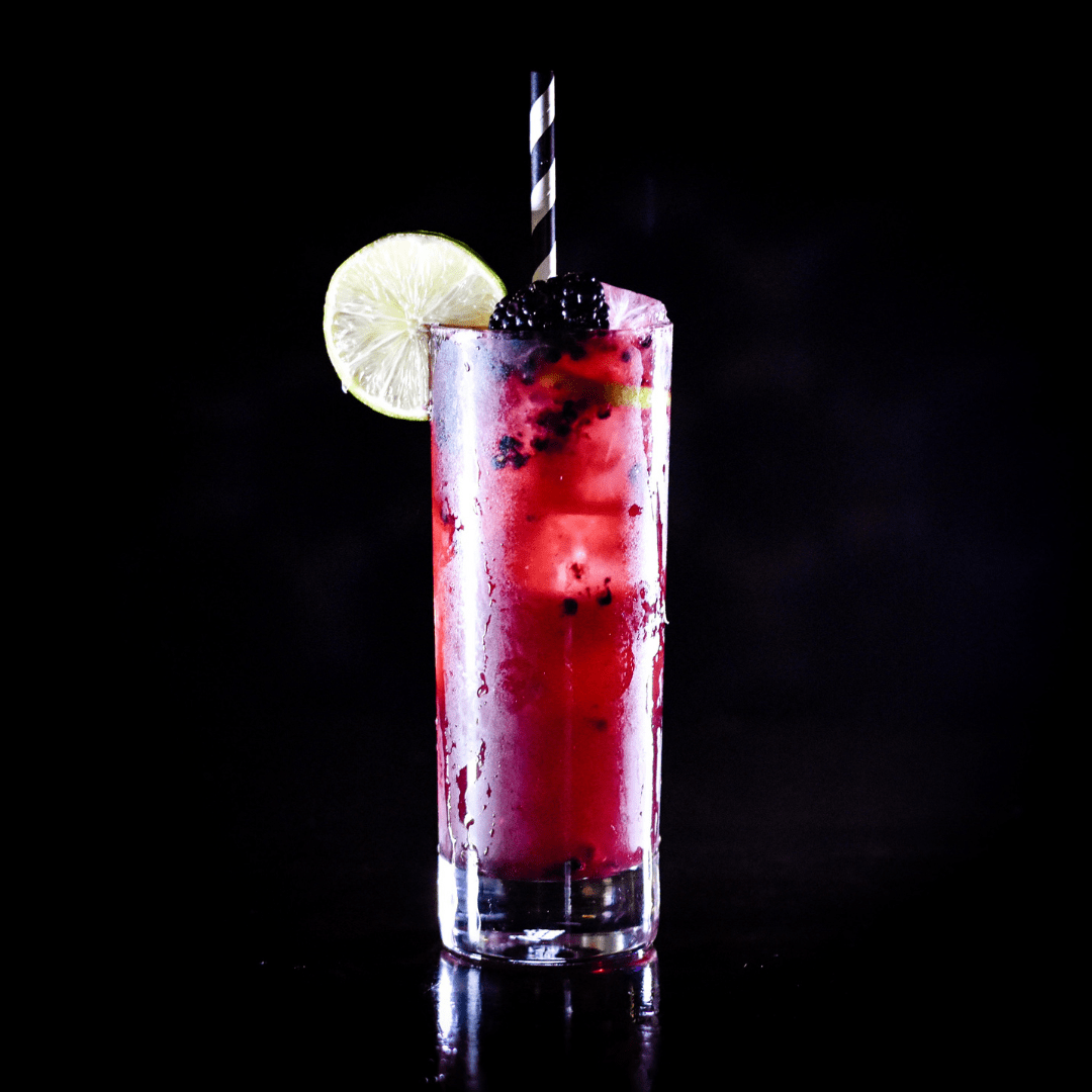 Silver tequila, muddled blackberry, cranberry juice, lime juice, and a splash of simple syrup.